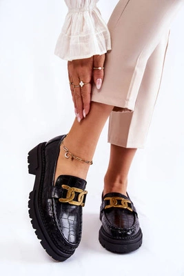 Skórzane Mokasyny Loafery Z Łańcuchem Czarne Killen