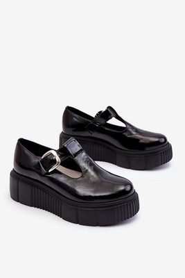 Lakierowane Skórzane Półbuty Ze Sprzączką Czarne Taliya