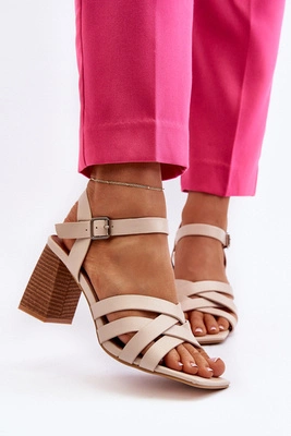 Sandały Damskie Na Słupku Beżowe Opifiana