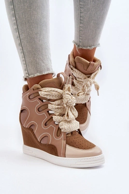 Damskie Sneakersy Na Koturnie Beżowe Leoppa