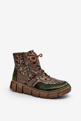 Wzorzyste Botki Damskie Skórzane Maciejka 06145-24 Oliwkowe