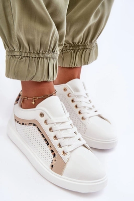 +1Skórzane Damskie Buty Sportowe Zwierzęcy Wzór Białe Rilee