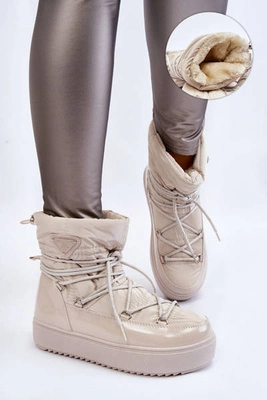 Damskie Modne Śniegowce Sznurowane Jasnobeżowe Carrios