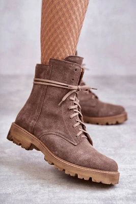 Modne Zamszowe Botki Sznurowane Beżowe Selma
