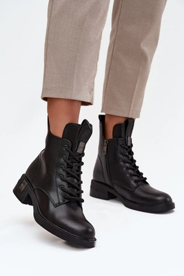 Skórzane Botki Damskie Na Niskim Obcasie Vinceza 66818 Czarne