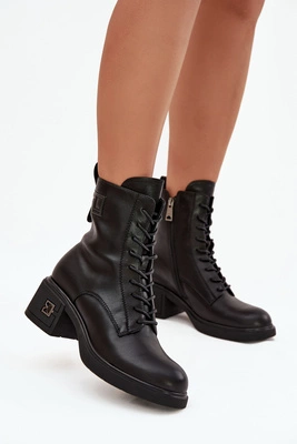 Ocieplane Botki Damskie Z Naturalnej Skóry Na Klocku Vinceza 66819 Czarne