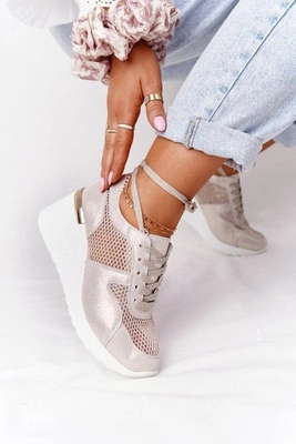 +2Skórzane Sneakersy Na Koturnie S.Barski Beżowe