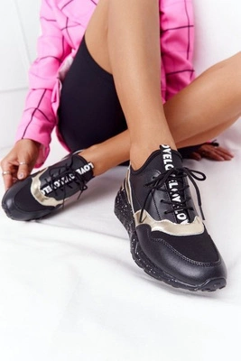 Skórzane Sneakersy Na Koturnie S.Barski Czarno-Złote