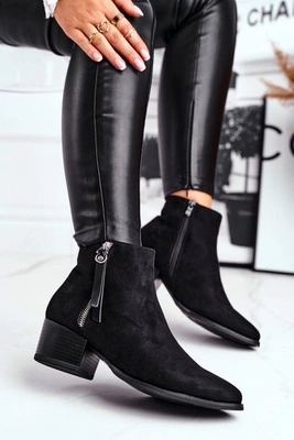 Damskie Botki Ocieplane Suwak z Przodu Czarne Hypnotized