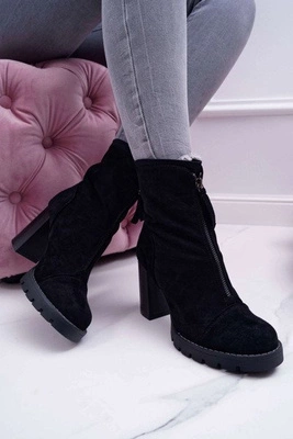 Botki Damskie Zamszowe na Słupku Czarne Barski 73-2