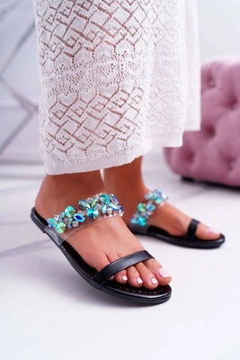 Damskie Klapki Lu Boo Eleganckie Z Cyrkoniami Czarne Elementary