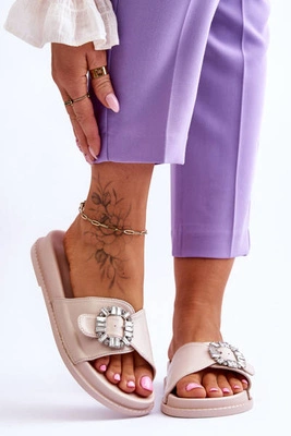 Damskie Klapki Na Platformie Z Ozdobą Beżowe Beneca