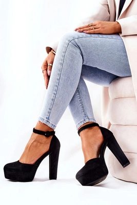Czółenka Damskie Na Słupku Zamszowe Czarne Florena