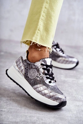 +1Damskie Buty Sportowe Na Koturnie GOE KK2N4083 Srebrne