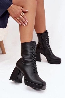 Botki Damskie Ocieplane Na Słupku Ze Sznurowaniem Czarne Juvina