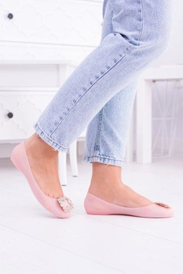 Lu Boo | Różowe Gumowe Balerinki Meliski Cyrkonie Palita