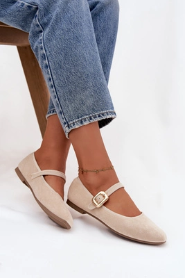Baleriny Z Paskiem I Sprzączką Eko Zamszowe Beżowe Vikilora