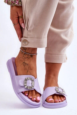 Damskie Klapki Na Platformie Z Ozdobą Fioletowe Beneca