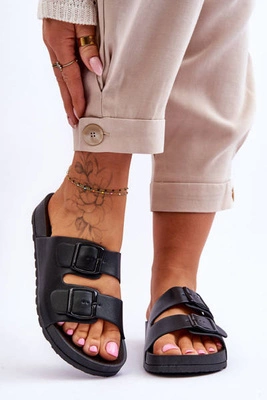Damskie Skórzane Klasyczne Klapki Czarne Loara