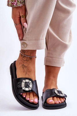 Damskie Klapki Na Platformie Z Ozdobą Czarne Beneca