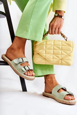 Damskie Skórzane Klapki Z Klamrą Zielone Devia