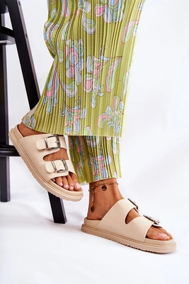 Damskie Klapki Chodaki Na Obcasie Beżowe Ivette