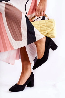 Klasyczne Czółenka Zamszowe Na Słupku Czarne Lency
