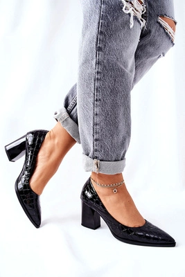 Skórzane Czółenka Na Słupku Maciejka 02629-05 Lakierowane Czarne