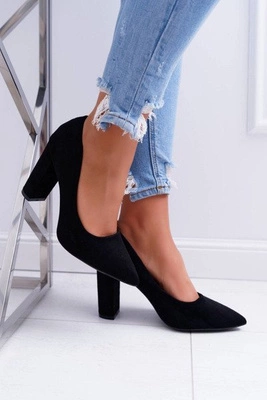 Zamszowe Czarne Czółenka na Słupku Harinta