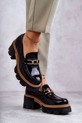Lakierowane Półbuty Loafery Na Platformie Czarne Reidun