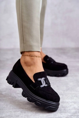 Zamszowe Półbuty Loafery Z Ozdobą Czarne Janissa