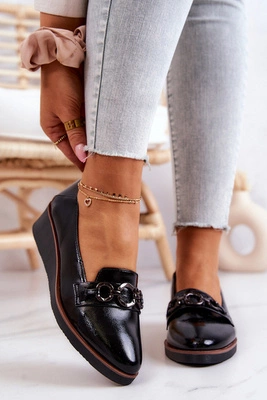 Damskie Półbuty Maciejka Lakierowane Loafery Czarne 4099B-01
