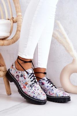 +8Damskie Skórzane Półbuty Oxfordy Maciejka 04087-38 Białe W Kwiaty