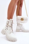 +2Modne Botki Workery Z Ozdobnym Paseczkiem Białe Rocky