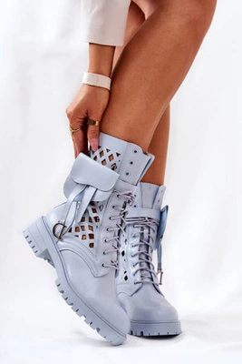 +3Ażurowe Botki Z Nerką Niebieskie Rock Star