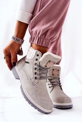 Skórzane Trapery Z Ociepleniem Jasnoszare Laralis