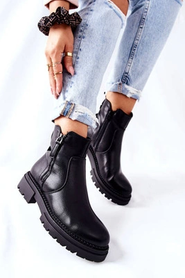 Damskie Botki Workery Wsuwane Czarne Maxine