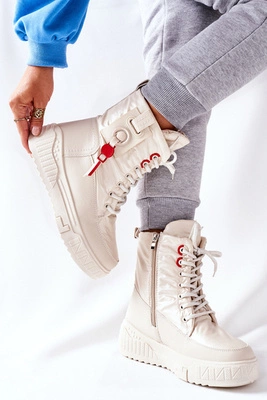 Damskie Ocieplane Botki Sztyblety Beżowe Visione