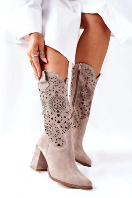 Damskie Skórzane Kozaki na Słupku Cappuccino Lewski 2923 Pick Me Up
