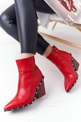 Damskie Skórzane Botki Na Słupku Maciejka Rude 04833-43