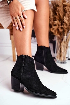 Botki Damskie Na Obcasie Sergio Leone Zamszowe Czarne BT613