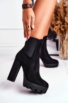Botki Damskie Na Słupku Eko-Zamsz Czarne Juliet
