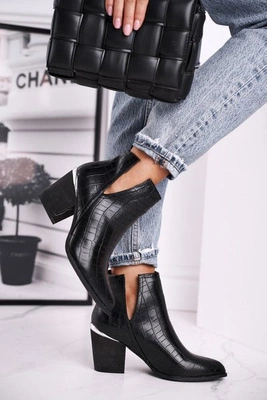 Botki Damskie Na Słupku Ciepłe Kowbojki Czarne Athens