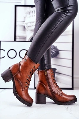 Botki Damskie Na Słupku Ocieplane Brązowe Fiber