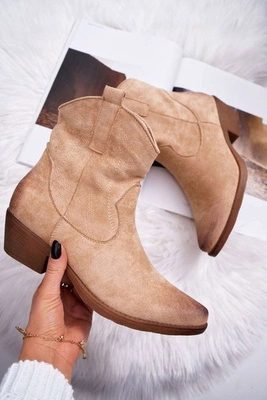 Damskie Botki Kowbojki Zamszowe Beżowe Ferders