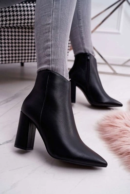 Botki Damskie Na Słupku Laura Messi Skórzane Czarne 2056