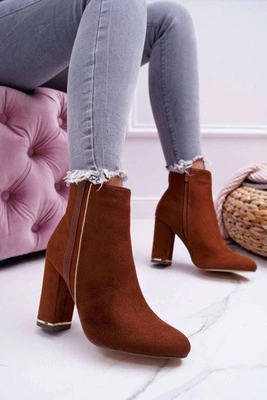 Botki Damskie Na Obcasie Skóra Zamsz Cappuccino Nicole 2433