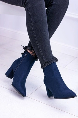 +1Granatowe Zamszowe Botki Na Szpilce Medea
