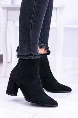 Damskie Czarne Botki Na Słupku Zamsz Ferimate