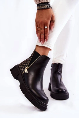 Damskie Botki Skórzane Z Ozdobnym Zamkiem Czarne Lorra